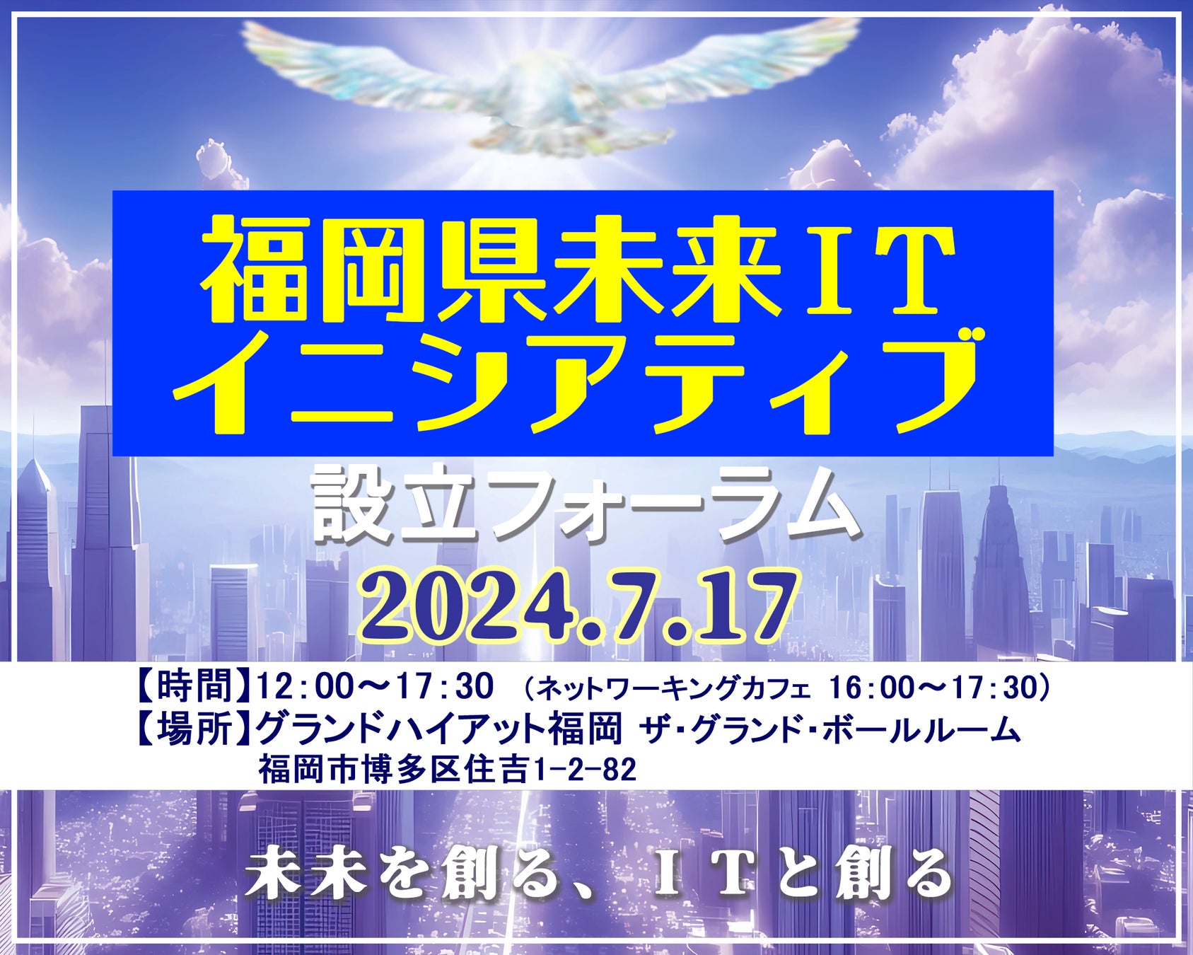 このたび、これらの企業等を核にITに関わるすべての人による県内IT産業の持続的な発展を目指し、7月17日に「福岡県未来ITイニシアティブ」※を設立するとともに、以下のとおり設立フォーラムを開催します。