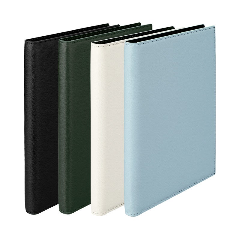 ビジネスの場でもスッキリとした印象を与える、シンプルなレザー調の表紙を採用。大事な商談の場でも使用できる高級感のあるつくりです。仕事用の鞄にもスッキリと収まるスリムなサイズ感なので、持ち運びに適しています。