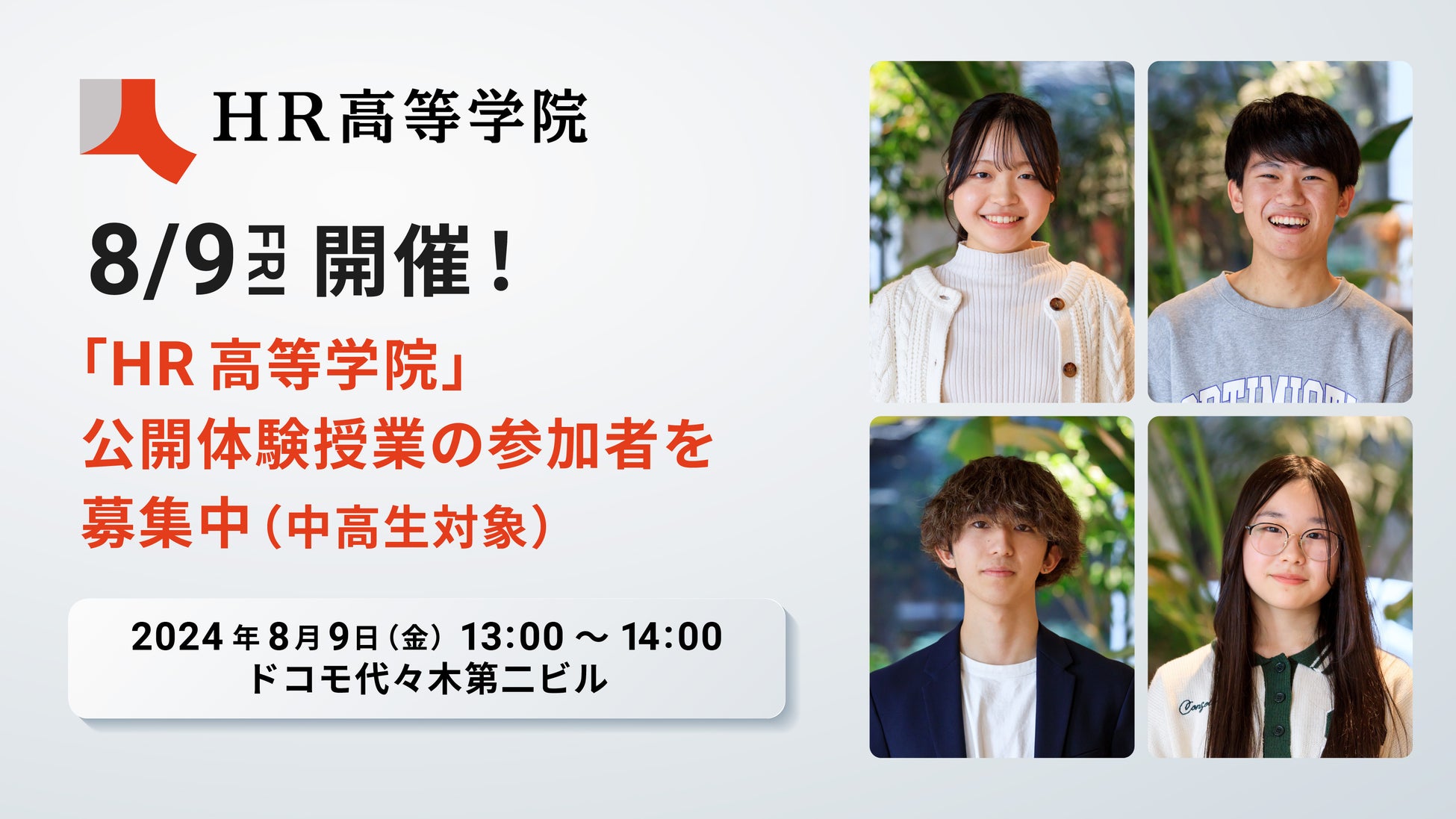 8/9開催!「HR高等学院」公開体験授業の参加者を募集中!【中高生対象】