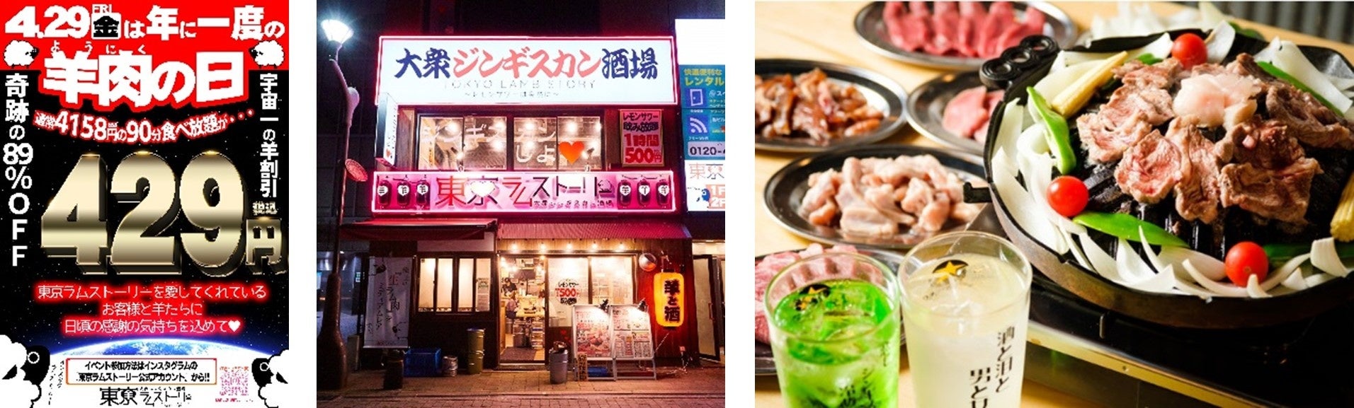 4月29日(金)は、年に一度の「羊肉(ようにく)の日」『大衆ジンギスカン酒場 東京ラムストーリー』3店舗合計で29組様に「90分間 肉食べ放題」通常価格4,158円を429円で提供