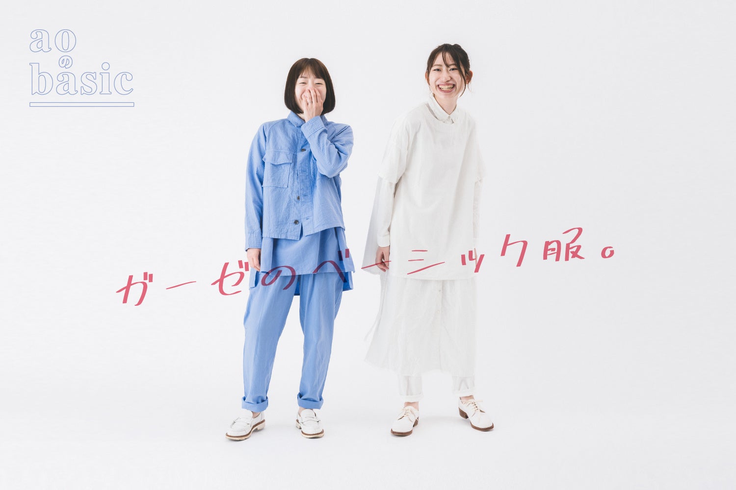 軽やかで肌触りがよい、というガーゼの心地よさはそのままに、着合わせやすいアイテムとカラーで毎日のおしゃれをより楽しんでいただける新ライン「aoのベーシック」を2022年2月より順次発売いたします。