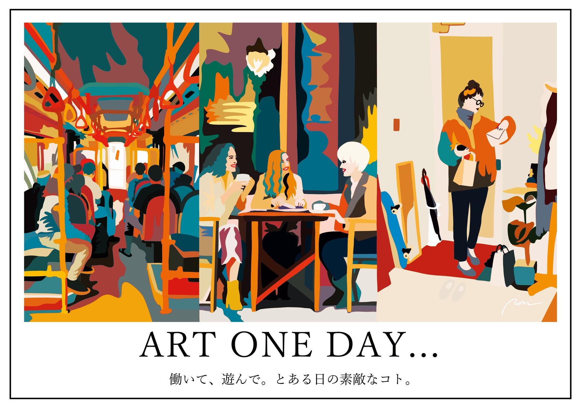 渋谷という街の持つイメージには、「遊ぶ場所・流行発信の場所」ということが最初に頭に思い浮かびますが、オフィスを構える企業も多く存在し、様々なショップが並び、そこで働く人々も多く存在します。そのため、「働く場所」だという側面も渋谷にはあります。東急プラザ渋谷に訪れるお客様は、しっかりと働いて、しっかり遊ぶというメリハリを知っている自立した大人のイメージでした。アート企画<ART ONE DAY...>では、働くこと、遊ぶことに妥協をしない大人たち、働くこと、遊ぶことの境界線がなく人生を楽しんでいる大人たち、そんな大人たちのとある1日を彩る、応援するという願いを込めたアートをお届けします。