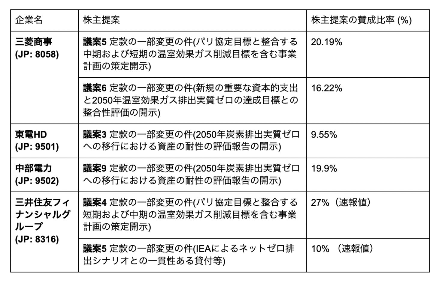 2022年6月29日(水): 日本企業に対しネットゼロの達成に向けた行動と透明性の向上を求める株主提案を支持した株主の数が過去最多となりました。