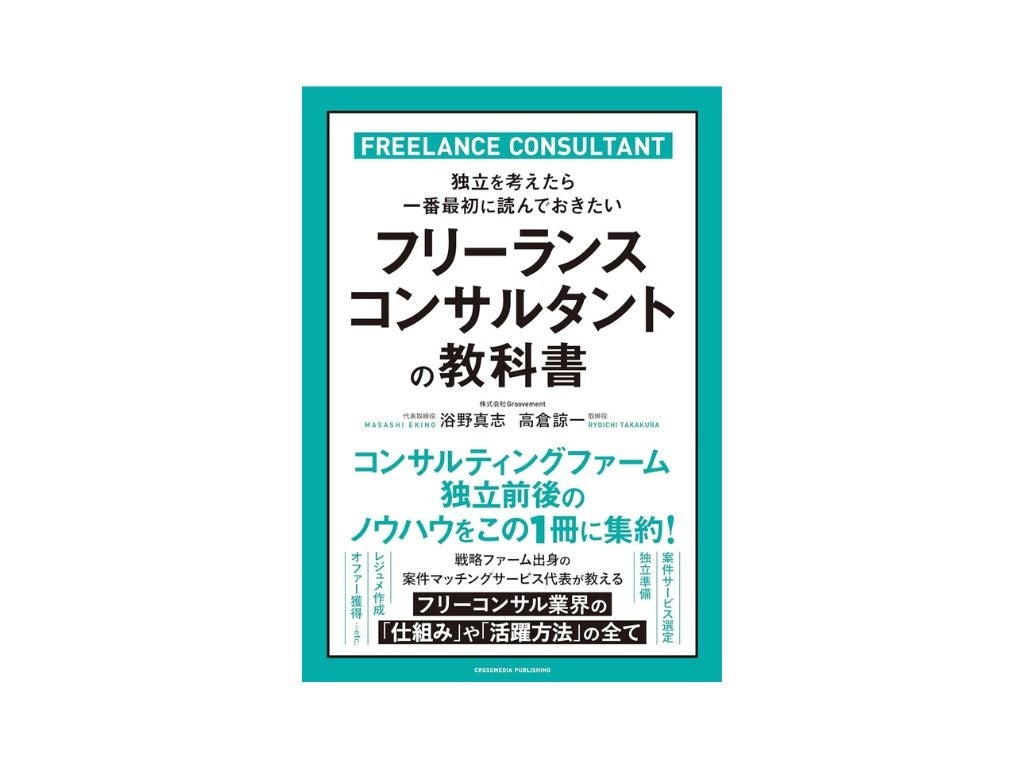 新たな挑戦をするプロフェッショナルを支援する株式会社Groovement(本社:東京都渋谷区、代表取締役:浴野真志)は2023年12月1日(金)に書籍「フリーランスコンサルタントの教科書」を株式会社クロスメディア・パブリッシングより発売いたしました。