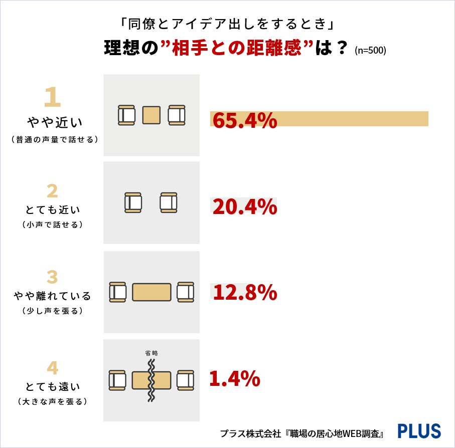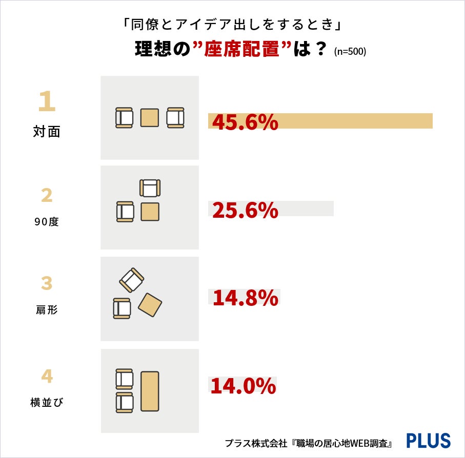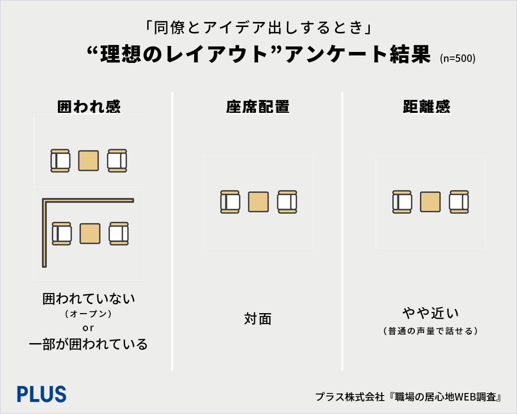 今回は、デスクワーク中心の会社員500名を対象に、「シチュエーション別の”理想の打合せレイアウト”」を尋ねるアンケート調査を実施しました。