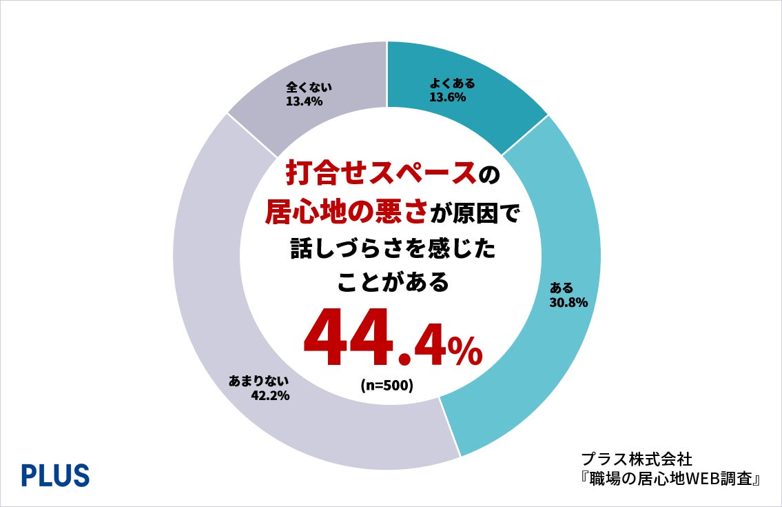 ■打合せスペースの「居心地の悪さ」が原因で話しづらさを感じたことがある人は44.4%。