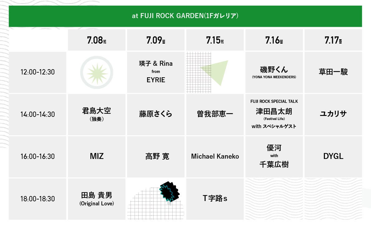 フジロック本番に先駆けて、プレイベント「FUJI ROCK WEEK at 東京ミッドタウン八重洲」7月8日(土)〜7月17日(月・祝)開催!