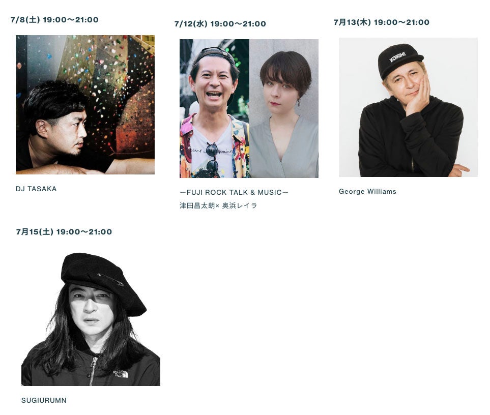 イベント期間中の土日祝 [ 7/8(土)、9(日)、15(土)、16(日) 、17(月・祝) ] の5日間、フジロックにゆかりの深い全14組のアーティストによるアコースティックライブを開催。さらに、津田昌太朗さんとスペシャルゲストによるスペシャルトークショーもお贈りします。
