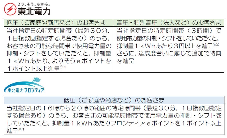 東北電力・東北電力フロンティアによるデマンドレスポンスサービスの実施について