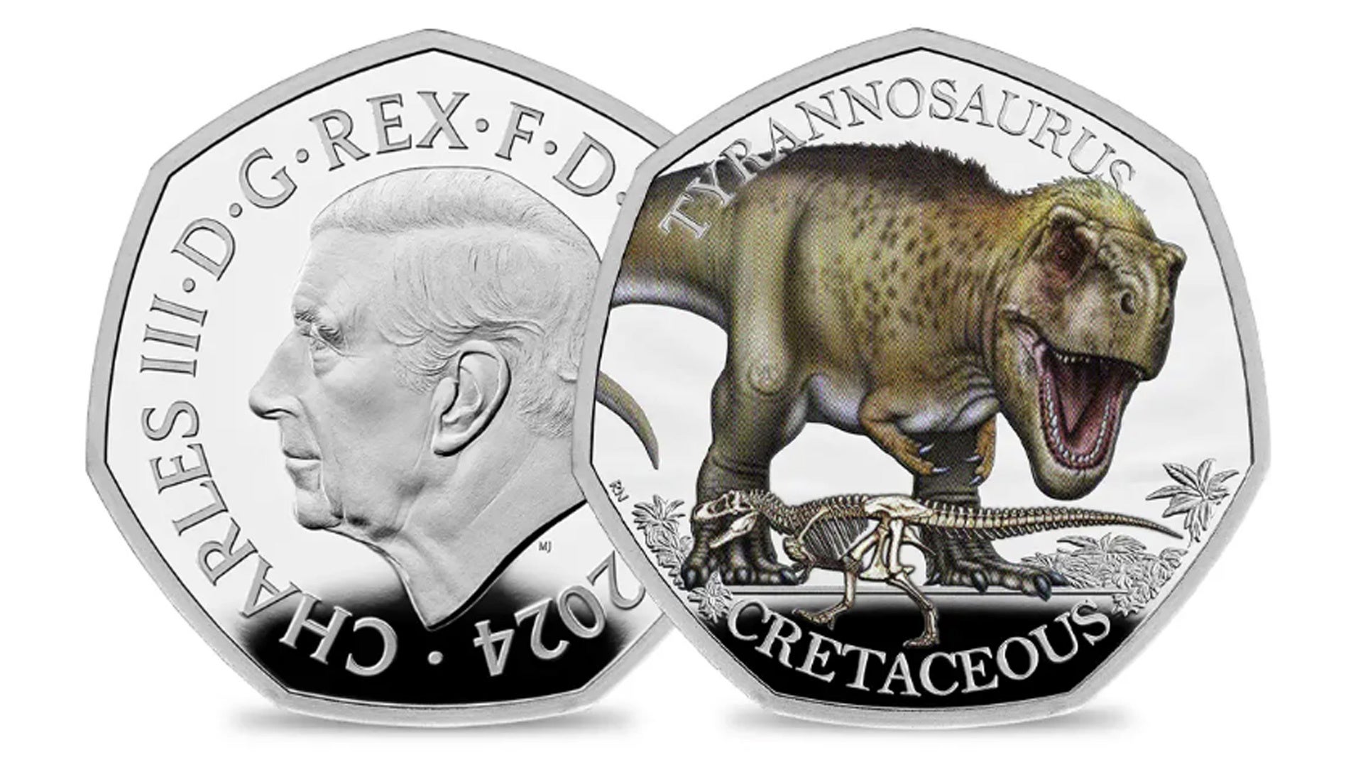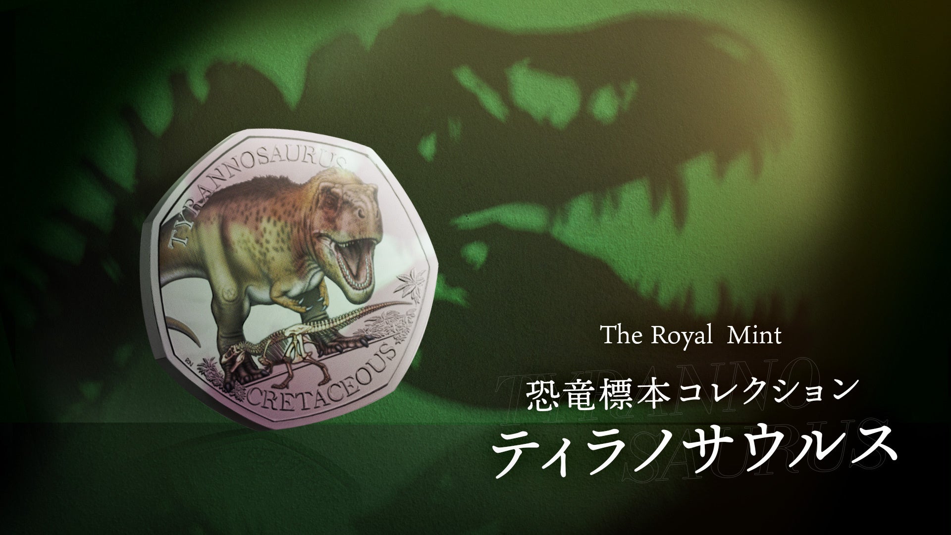 世界で最も愛される恐竜のひとつティラノサウルスを描いたイギリス公式コインが、ロイヤルミントとロンドン自然史博物館のコラボレーションにより実現