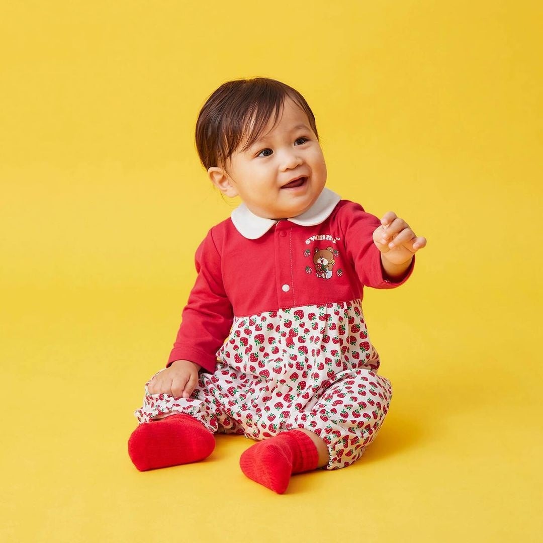 クマのワンポイント柄は、お腹から下がいちごの総柄になっているのもポイントです!