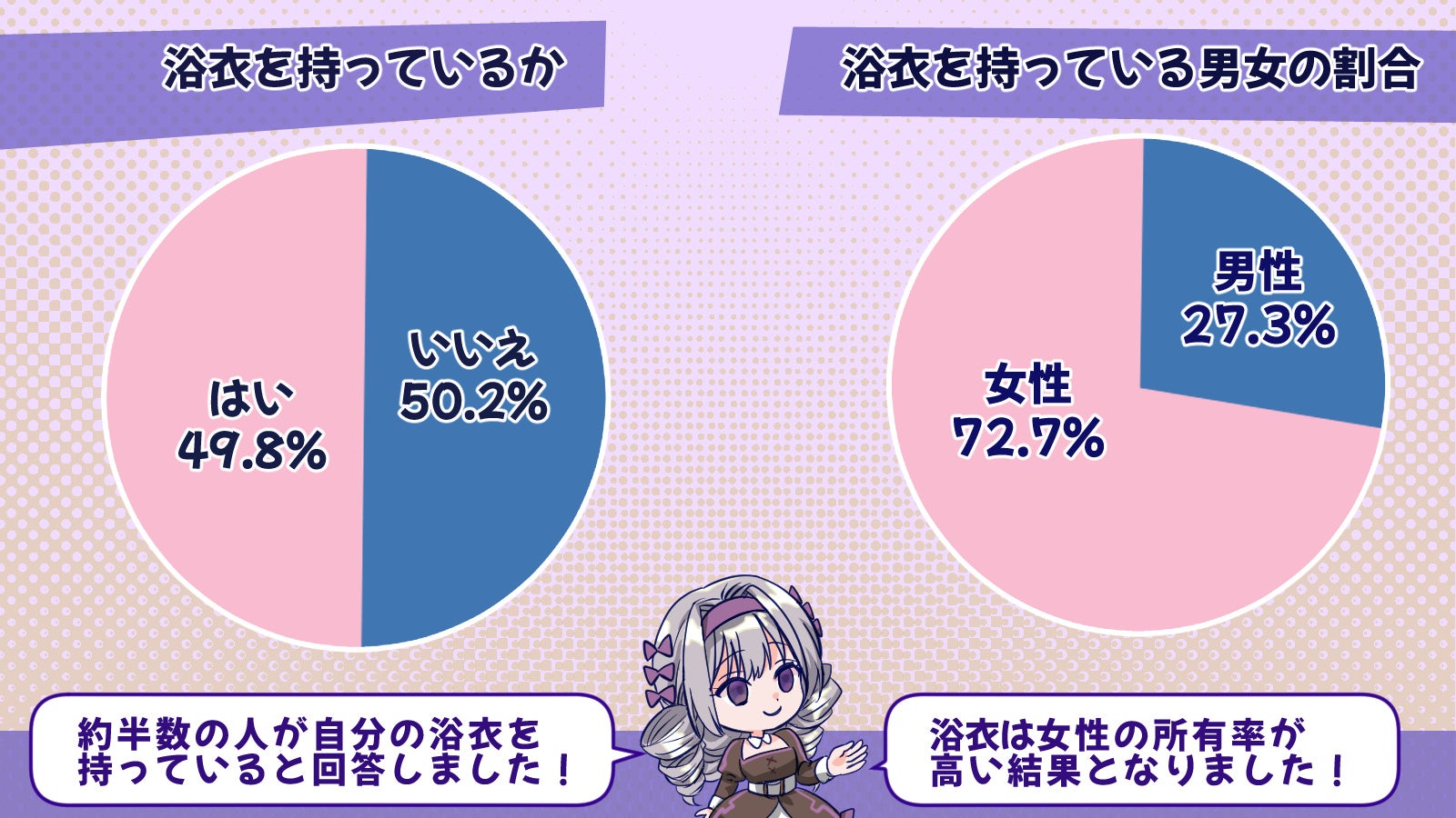 その結果、全体の49.8%、約半数の人が自分の浴衣を持っていると回答しました。