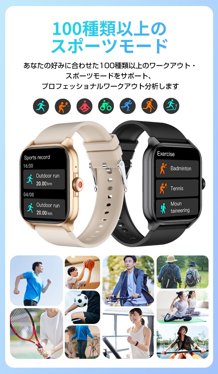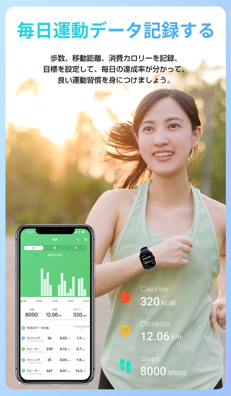 QX15は、100種類以上のスポーツモードを搭載し、歩数、消費カロリー、距離、心拍数を正確に記録します。これにより、運動の効果を可視化し、最適な運動量と時間を計画的に管理することができます。