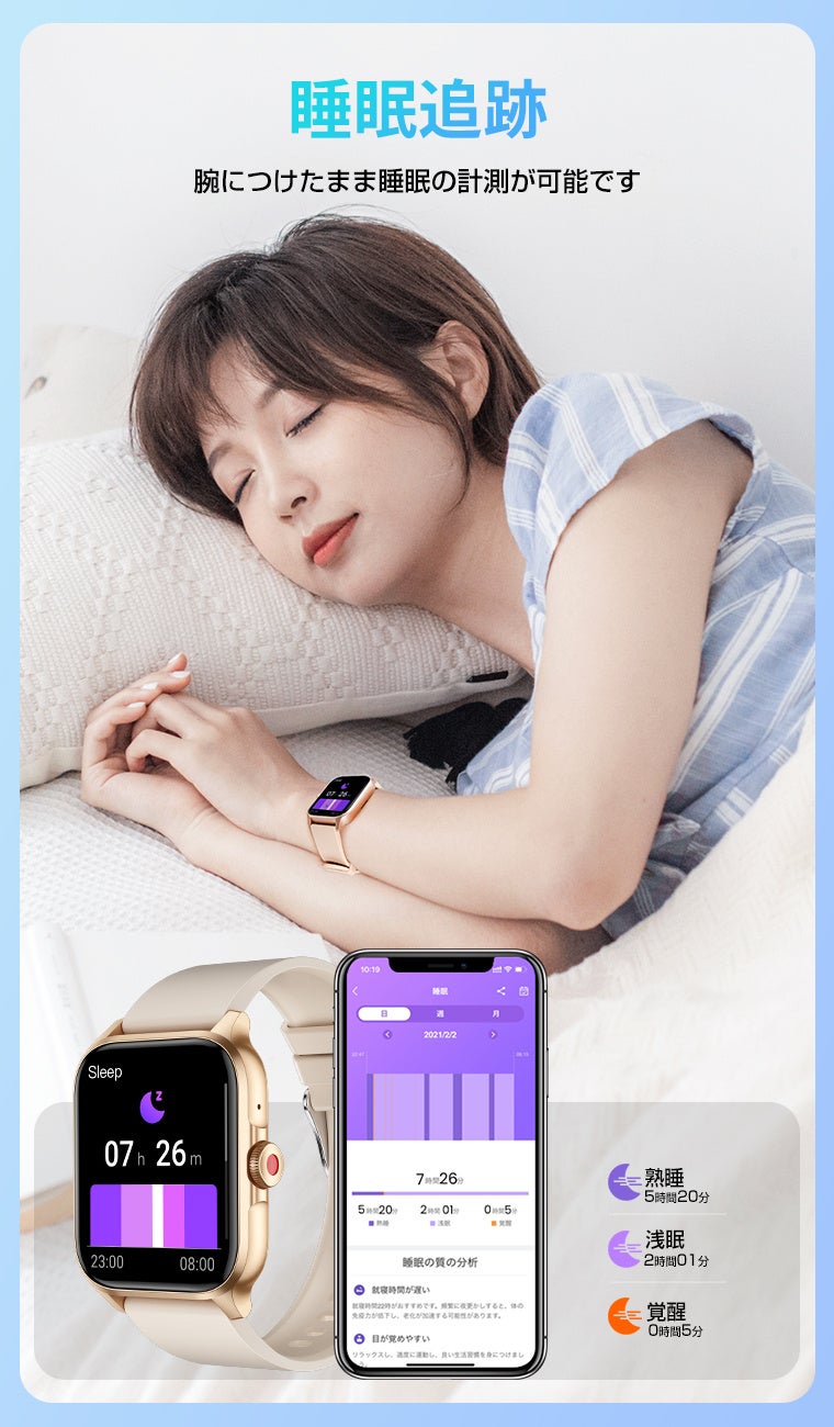 また睡眠ステージ(レム睡眠・深い睡眠など)トラッキング機能を搭載しているので簡単に自身の睡眠の傾向がつかめるので日々の睡眠の改善が可能です。