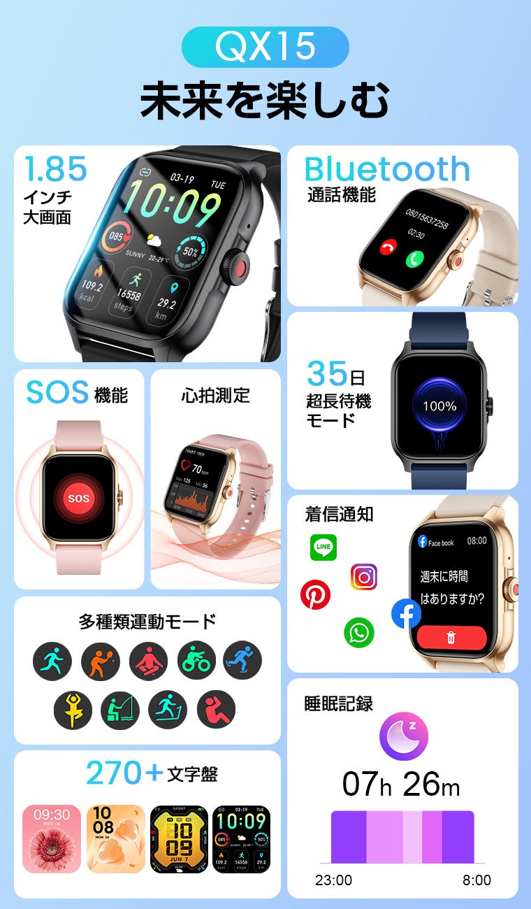 ライブリーライフ株式会社は、新スマートウォッチ「QX15」を発売しました。QX15は、Bluetooth通話機能、健康管理、服薬リマインダー、緊急SOS機能を備えた多機能モデルで、日常生活をより便利で安心なものにサポートします。