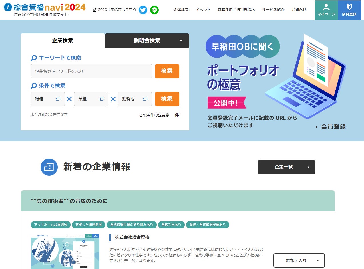 【総合資格学院】2024年卒 建築系・土木系学生向け就職情報サイト公開『総合資格navi 2024』で就活スタート!