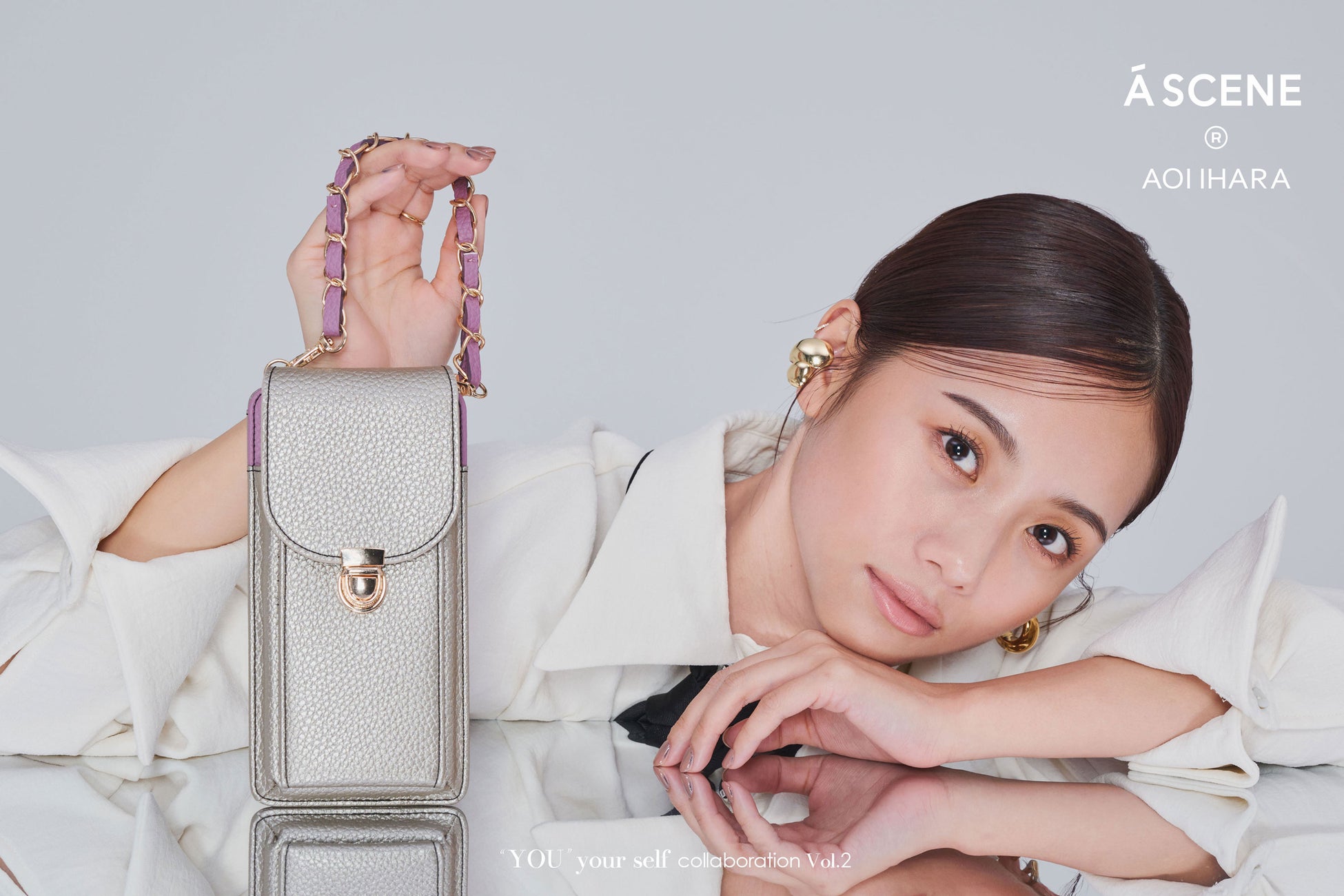 第二弾となる今回は、より多くの方へお届けできるよう、iPhone以外のスマートフォンにも対応可能なバッグタイプ。ミニバッグ感覚で持てるデザインには彼女のこだわりを存分に落とし込み、これひとつで外出できるように収納力と機能性を重視。彼女のアイデアとA SCENEのコンセプトワークが見事にマッチした特別なアイテムです。