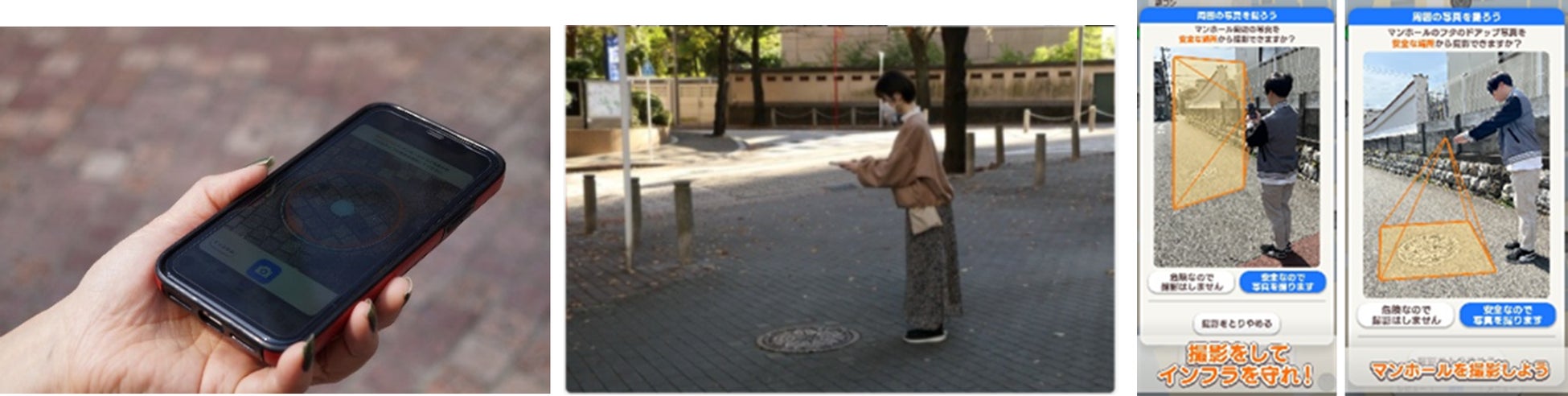 3)「鉄とコンクリートの守り人」アプリを使って、マンホールを撮影・投稿。