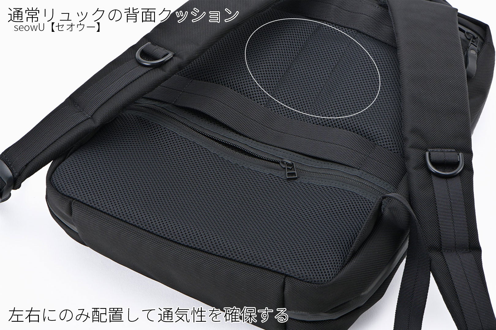 芯とクッション材を抜くことでさらに軽くスマートなリュックに進化します。