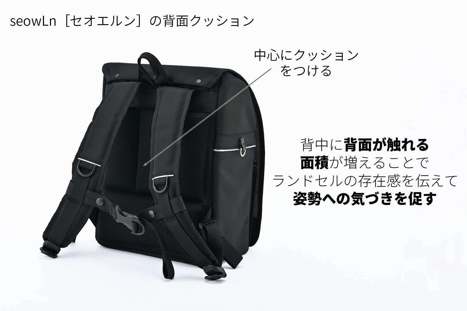 篠丸先生のアドバイスやビジネスバッグで培った技術を元に荷物を軽く感じさせる方法を研究して作られたランドセルがseowLn[セオエルン]です。