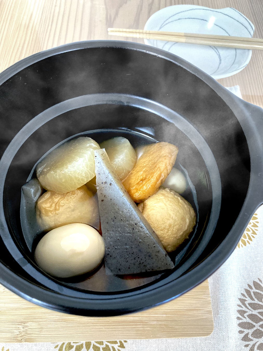 当商品の炊飯では1合の土鍋ご飯が電子レンジなら10分で炊けます※。おこげが嬉しい炊き込みご飯は直火で炊くのがお勧めです。毎日の食事やお弁当に欠かせない煮物が電子レンジなら材料を入れて時間をセットするだけ、調理に時間のかかる根菜の煮物も簡単に仕上がります。蒸し料理は付属のシリコントレイを土鍋にセットして、野菜や鶏肉、きのこなどお好みの食材を蒸し上げます。素材の味を引き出しふっくら仕上がる蒸し料理はとてもヘルシーです。トレイはシリコン製なので、焼売や肉まんの皮がこびりつかずお手入れも簡単です。その他1人用のおでんやラーメン鍋として、また電子レンジでのパスタ調理などにも使える万能な調理器具としてご使用いただけます。