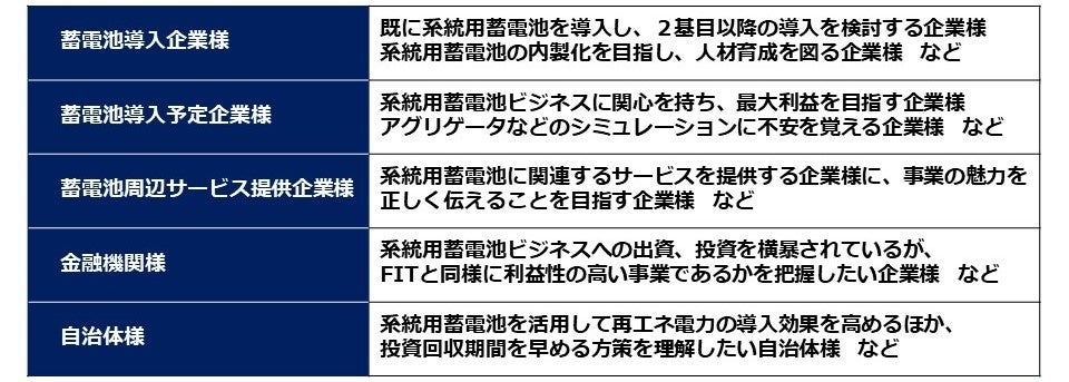 本セミナーは、現在すでに系統用蓄電池ビジネスに関わっている方、将来的に関わる可能性がある事業者様を対象としています。