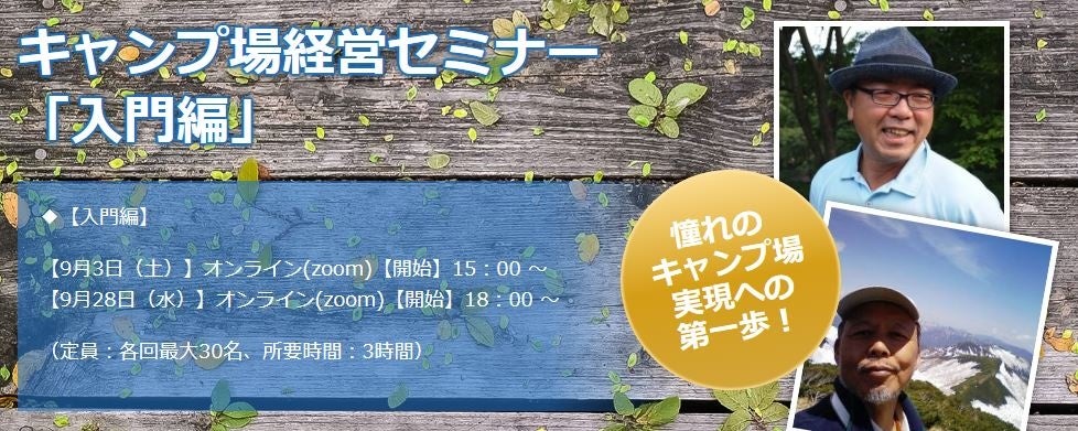 ■ 内 容:前半:キャンプ場建設編、後半:キャンプ場運営編 全3時間のオンライン講座