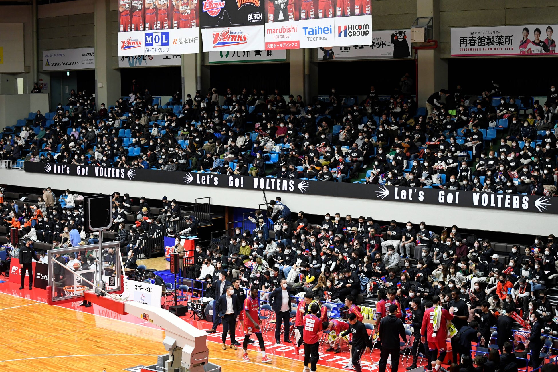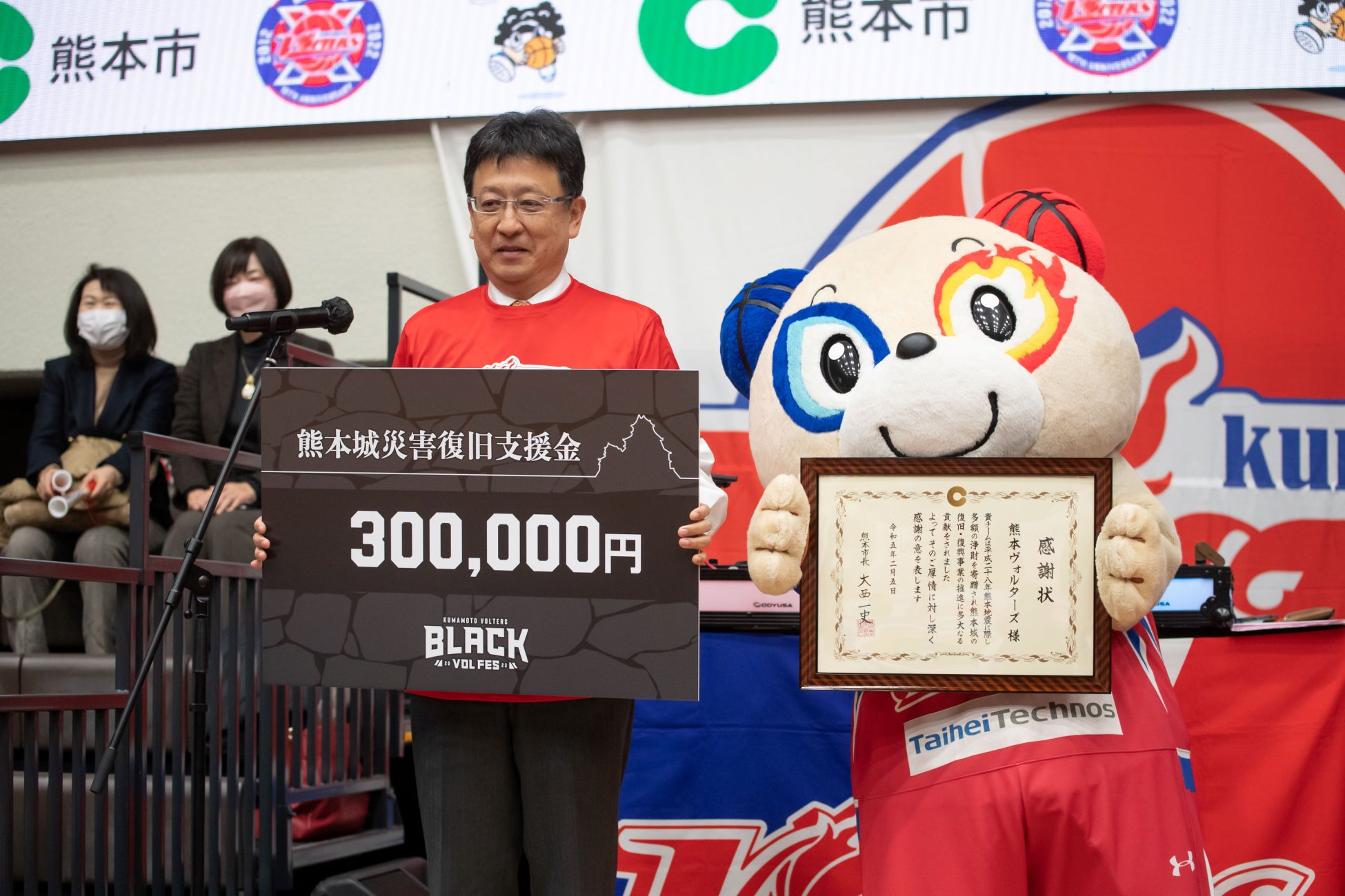 「BLACK VOL FES」は、熊本を象徴する“熊本城”の“黒”をモチーフにしたイベントで該当の4試合で、来場者に黒色のTシャツを無料配布し、会場一体を黒に染めあげます。当イベントの売上の一部は未だ復興の途中である熊本城復興に寄付します。
