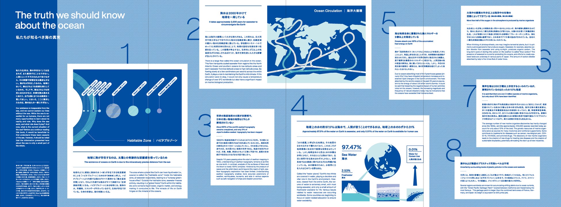 本書は、デザインを学ぶ人だけでなく、海洋環境に関心を持ち、持続可能な未来を築こうとするすべての方におすすめしたい一冊です。全ページが日英対訳にて、世界中の読者に向けて発信しています。