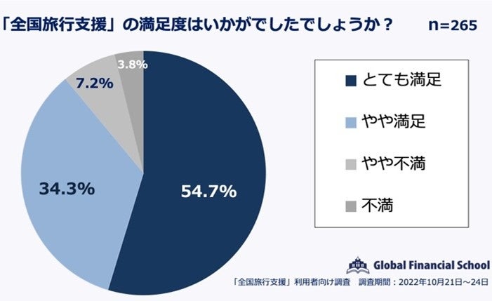 「全国旅行支援」に対する評価は「とても満足」(54.7%)、「やや満足」(34.3%)