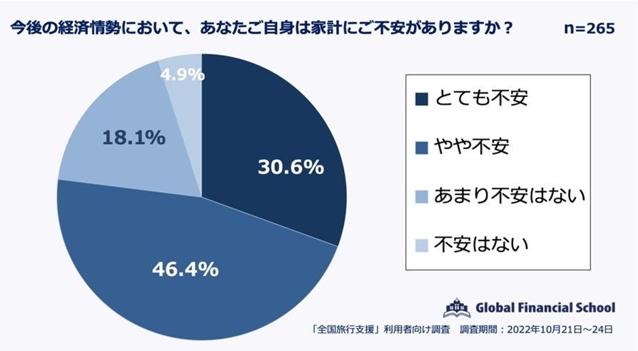「全国旅行支援」利用者の 77.0%は家計に不安を感じている