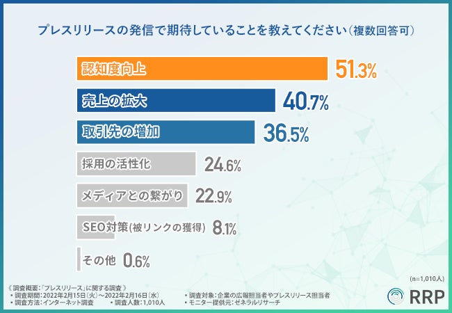 - 半数以上の広報担当者/プレスリリース担当者が「認知度拡大」を期待している