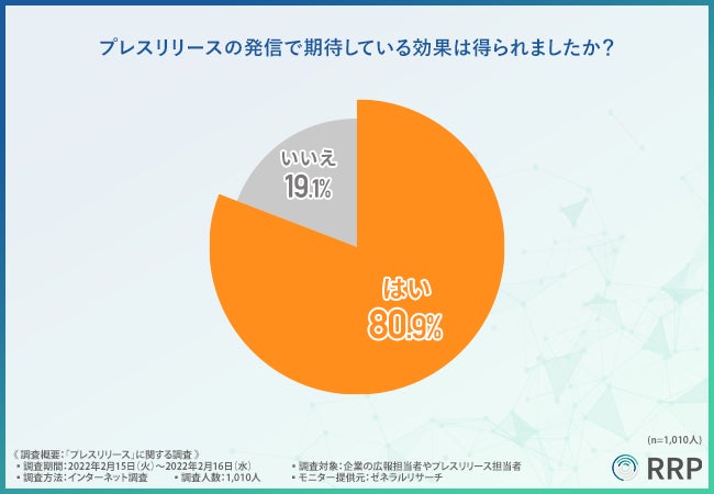 そこで、「プレスリリースの発信で期待している効果は得られましたか?」と質問したところ、8割以上の方が『はい(80.9%)』と回答しました。