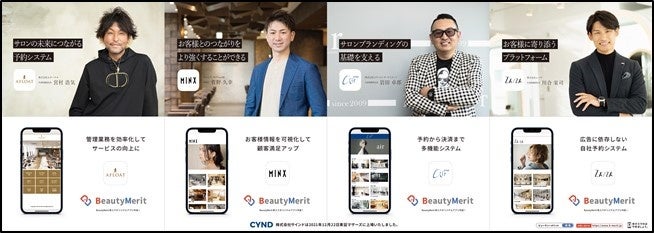 サインド(CYND)という社名は「CYBER(インターネット)」と「MIND(心)」を組み合わせた造語となっており、当社は「インターネットを通じて、心のつながりを提供する」というミッションのもと、理美容店舗に対して、店舗と顧客のつながりをサポートする、クラウド型予約管理システム「BeautyMerit(ビューティーメリット)」の提供を通じた事業展開を行っております。