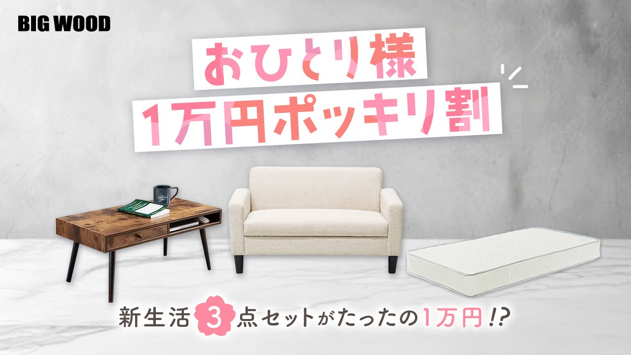 ビッグウッドが新生活の若者応援!1万円で1人暮らしの家具が揃う!?「おひとり様1万円ポッキリ割」開催