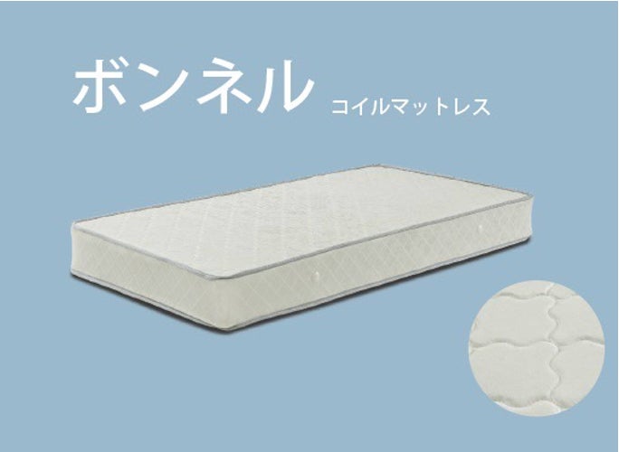 「ボンネルコイルマットレス」は、クッション層に使われているコイルが不織布に包まれていない分、通気性に優れた商品です。マットレス全体の"面"で体を支える「一体式」であるため、体が沈み込み過ぎず硬めの寝心地が特徴です