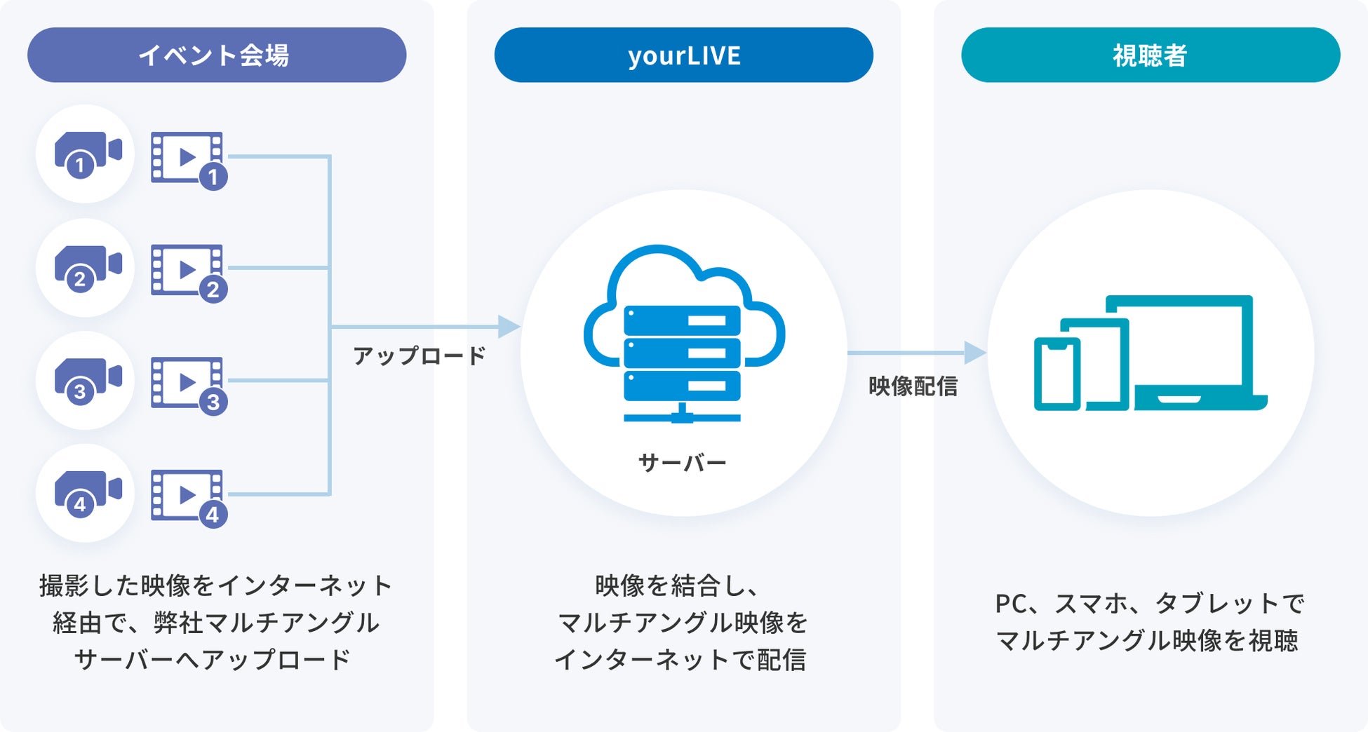 異なるカメラで撮影した複数の映像アングルを同時に再生、”マルチアングル配信サービス「yourLIVE」”で視聴者は好きなタイミングで見たいカメラへ切り替えが可能に。