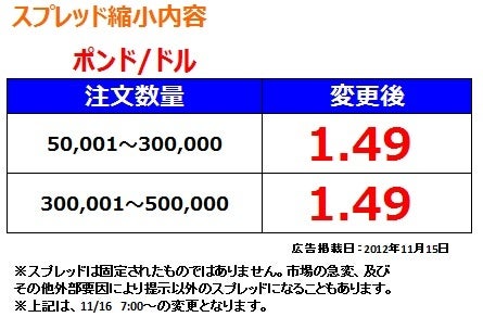 SBI FXトレードが提供する外国為替証拠金取引「SBI FXTRADE」は、11月に入り、怒涛のスプレッド縮小を繰り返し、6回目となる今回はポンド/ドルのスプレッドを縮小いたします。