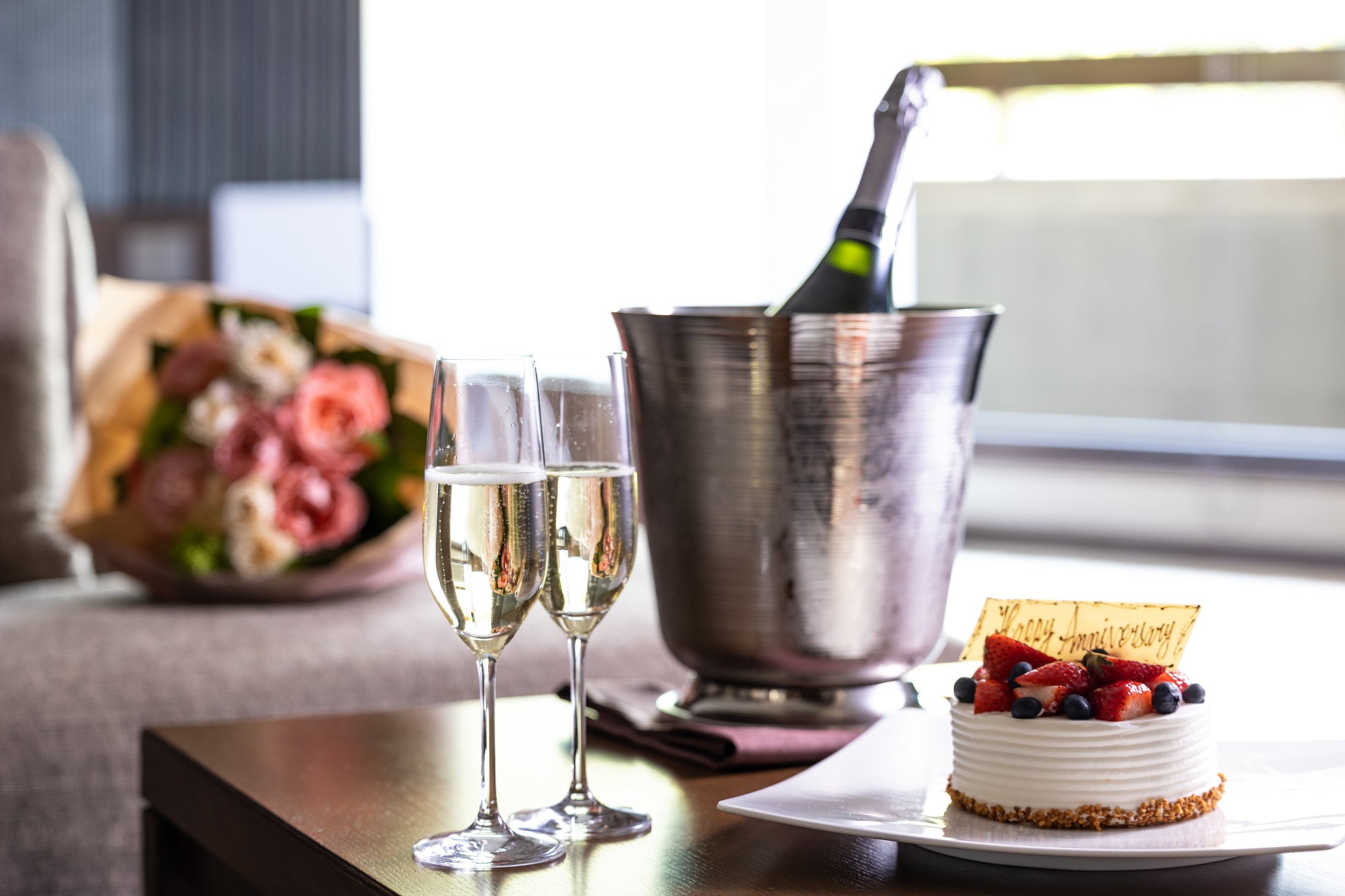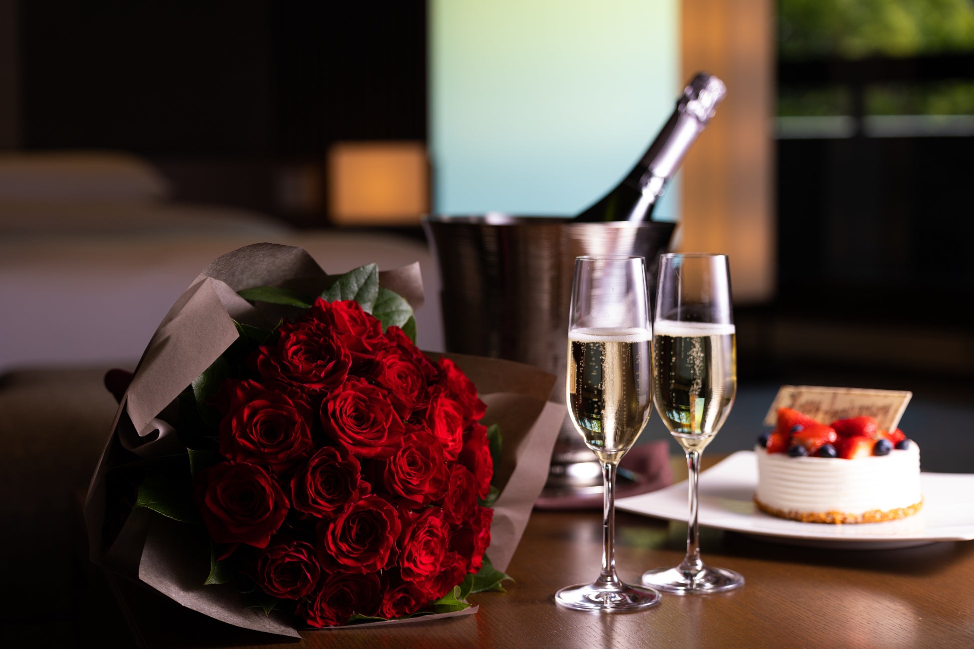 また、有料オプションにて花束(3,500円~税別)やバルーン(10,000円~税別)など特別なサプライズの演出もお手伝いさせていただきます。ご希望の方はご到着の5日前までにコンシェルジュまでお気軽にご相談ください。