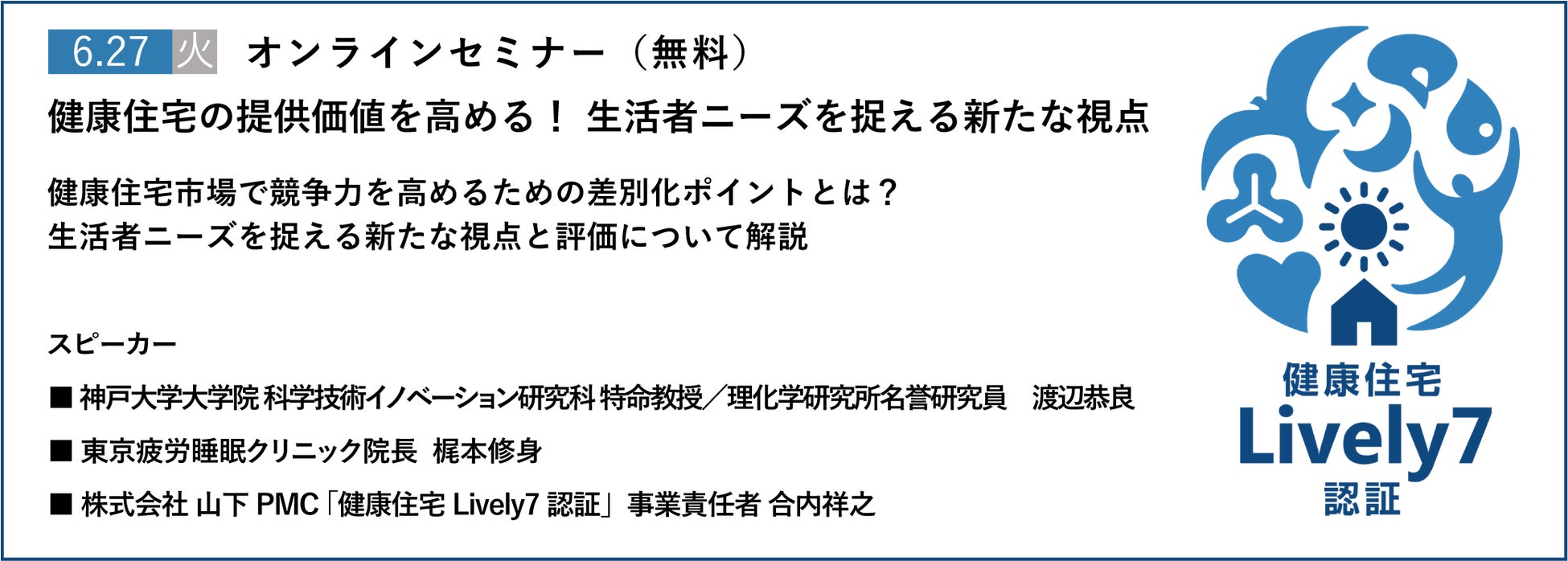 【山下PMCオンラインセミナー】生活者ニーズを捉える、健康住宅の提供価値とは?『健康住宅Lively7認証』初のオンラインセミナー(無料)を6/27開催