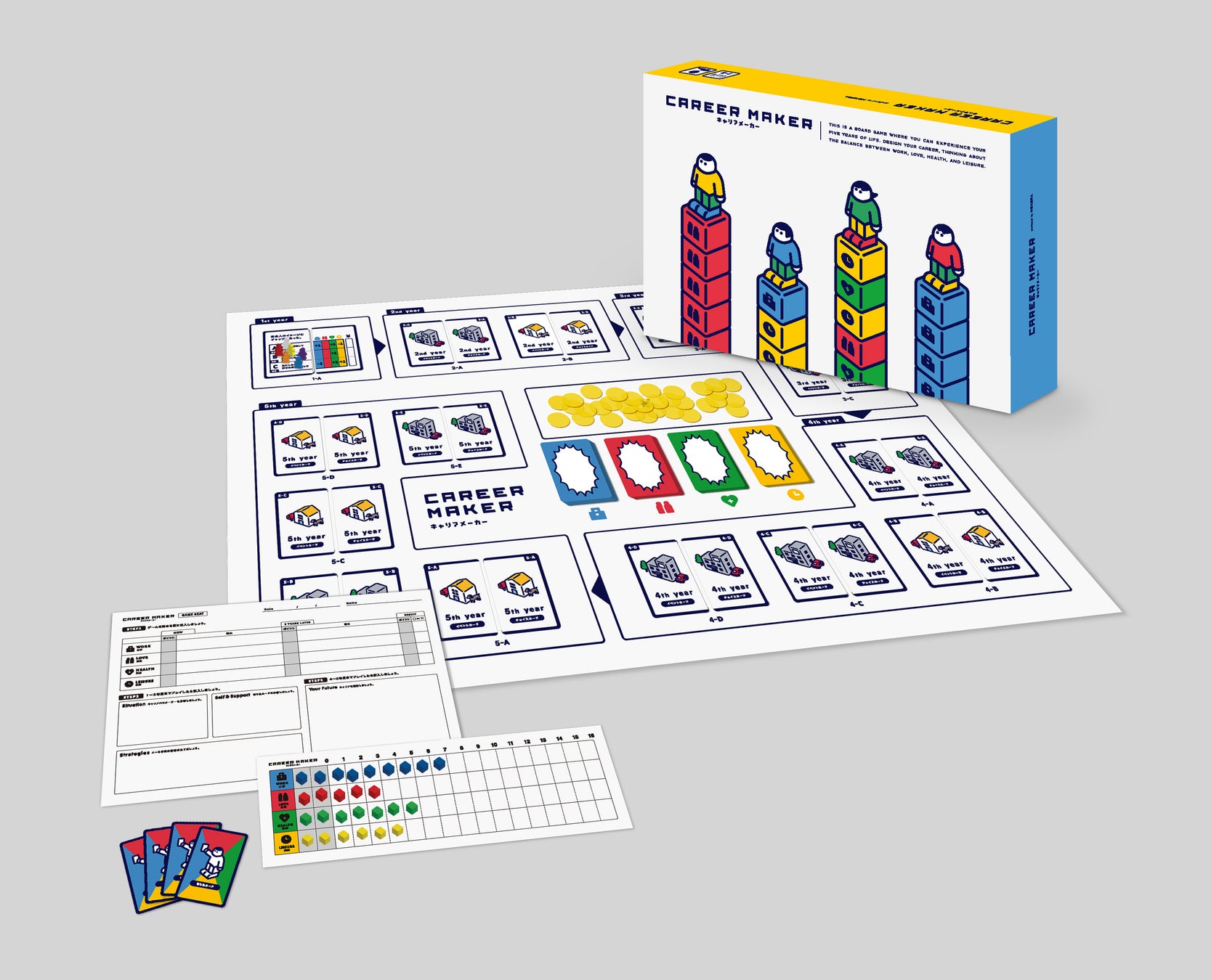 | 概要 | 新卒1~3年目の社員を対象に提供する企業研修プログラムです。新卒1~3年目の社員がボードゲームを体験+解説講義を受講することで、自身のキャリアについて考えるきっかけを与えます。 <手順> 1.冒頭に自身の目標パラメーター(仕事・家族・健康・余暇・お金のバランス)を設定 2.目標パラメーター達成のために現状でできることを整理 3.入社後5年間でよくあるイベント(「社会人のイメージギャップ」「結婚」「転勤」など)にゲーム内で向き合いそれぞれにおいて選択を行う 4.中間講義としてキャリアデザインをテーマとした講義を受講 5.講義の内容を活かし、ゲームを再プレイ 6.最終結果をもとに振り返りを実施 |