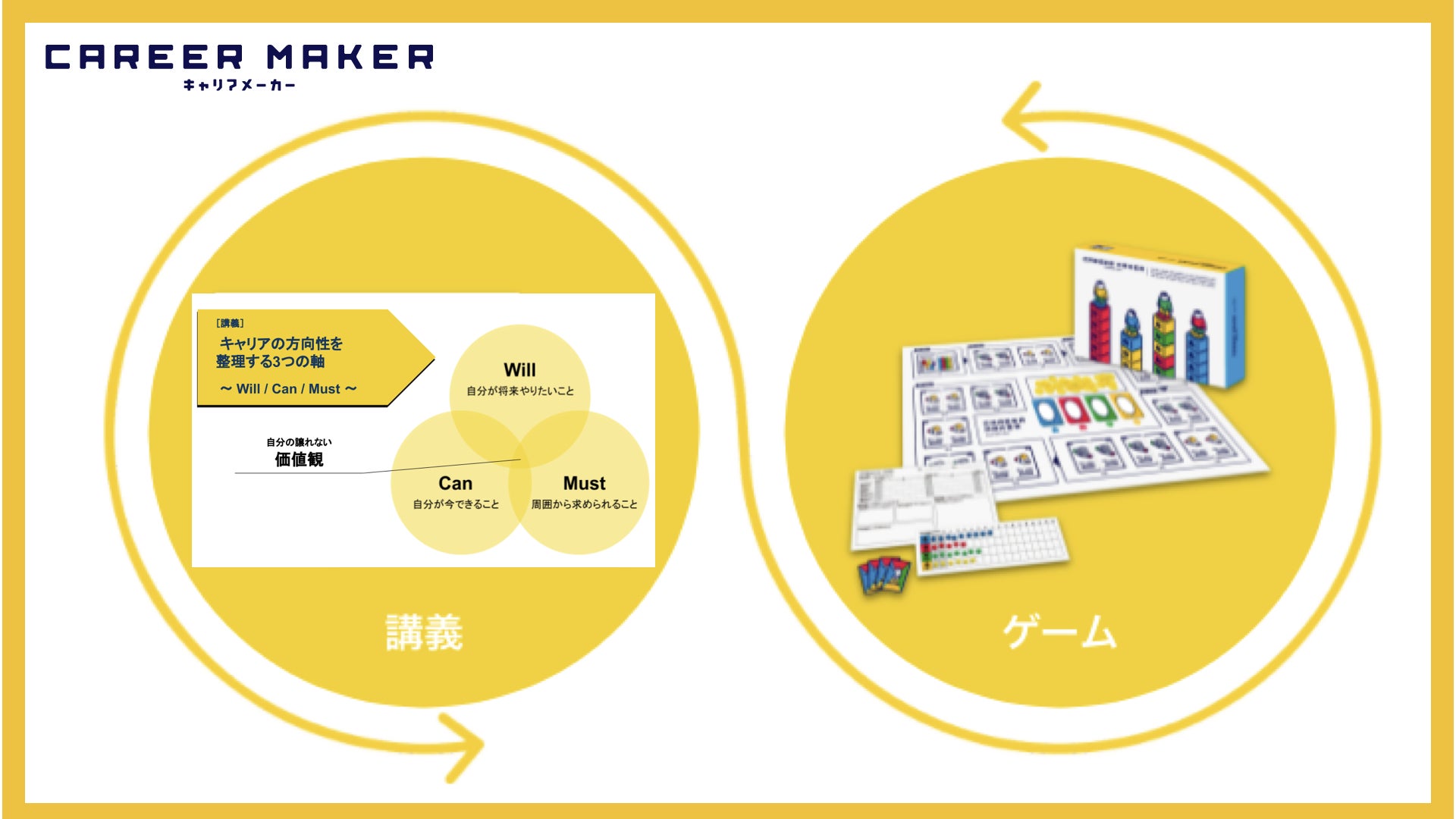 『CAREER MAKER』は、新卒1~3年目を対象としたキャリアデザインを講義とゲームで擬似体験しながら学ぶボードゲーム型企業研修です。かねてより企業様の社内研修向けプログラムとして提供している、経営視点を体感的に学習できるビジネスゲーム型研修サービス『Marketing Town』の提供時に人事部などの担当者から寄せられた「若手社員のキャリア形成に活かせるプログラムが欲しい」という声にお応えし、提供を開始しました。