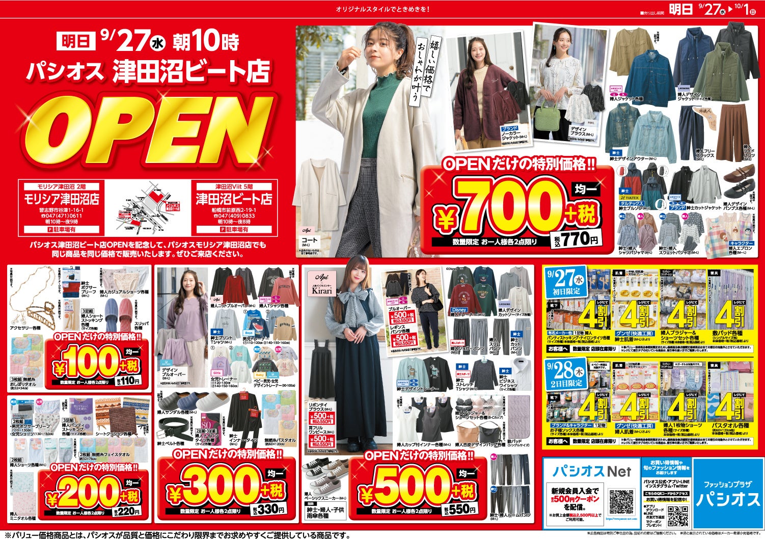 近隣にお住まいの方々に向けては、9月26日(火)に新聞折込チラシを配布予定です。お得な情報は「パシオス公式サイト」(https://www.paseos.co.jp/)、またはパシオス公式LINE(https://line.me/R/ti/p/@205fzbrb)でもご確認いただけますので、この機会にどうぞご利用ください。
