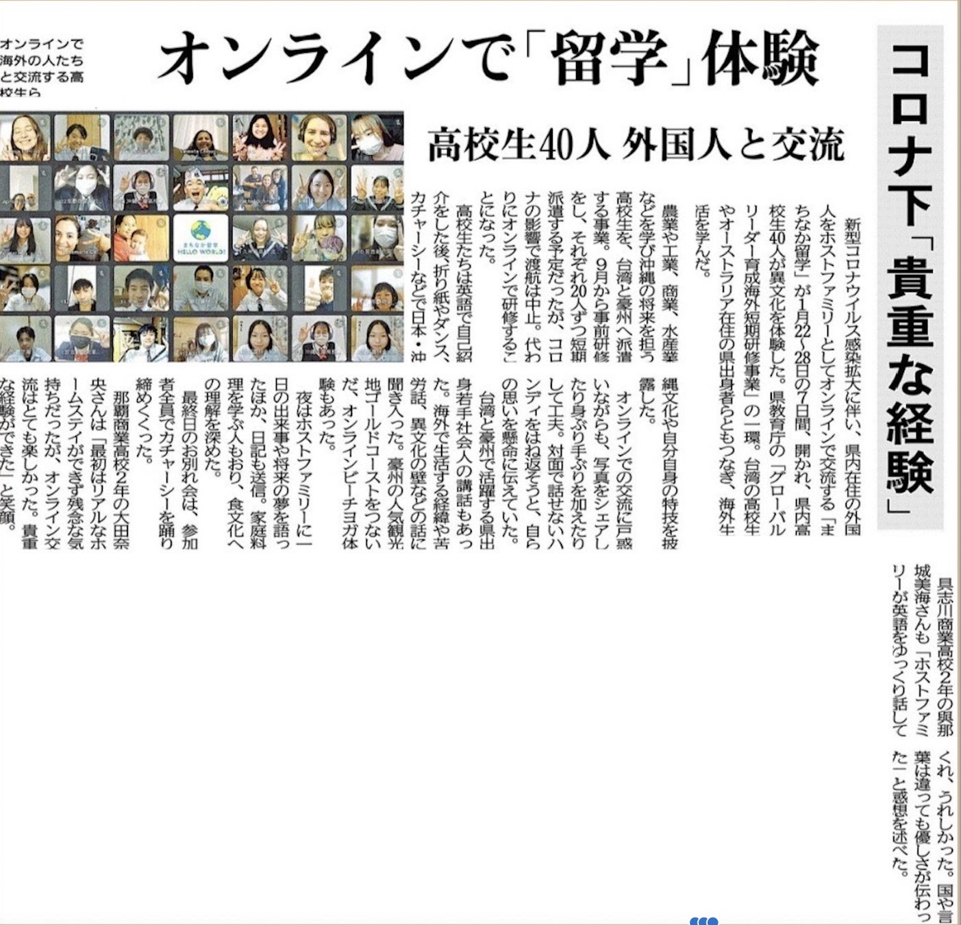 沖縄地方紙「沖縄タイムス」に取組について掲載いただきました。(2021年2月2日掲載)