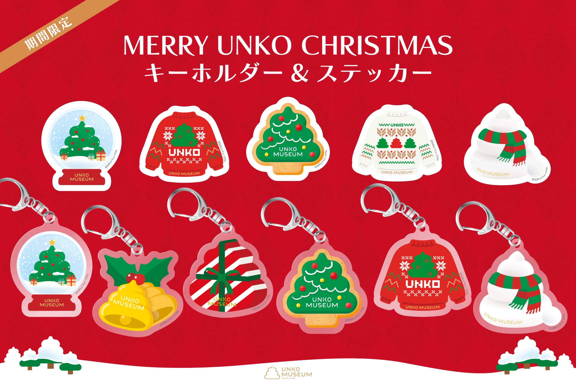 CHRISTMASうんこパーティーをイメージした冬限定グッズが登場!クリスマス仕様のステッカーやキーホルダーをクリスマス会期中に限り販売いたします。数量限定のため、お早めにお買い求めください。