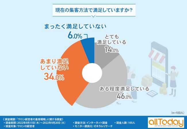 【オールトゥデイ|調査レポート】4割のサロン経営者が今の集客方法に満足していないと回答。その理由とは?