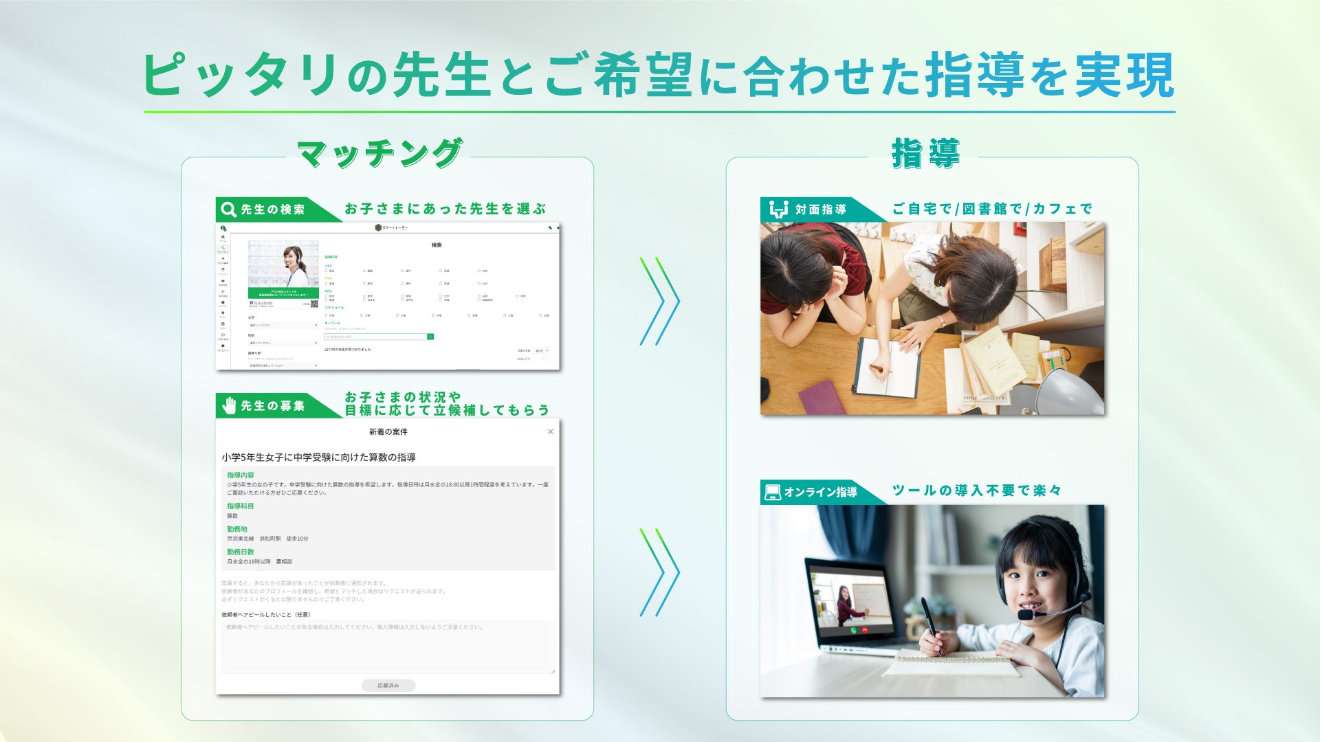 今後は、サービスの提供を通じて、さらなる機能改善に努める他、より条件のあった先生とマッチングできるよう対応を進めてまいります。