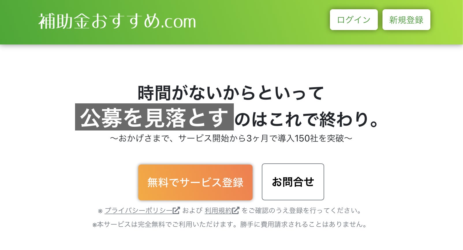 補助金・助成金レコメンドサービス「補助金おすすめ.com」、導入150社を突破