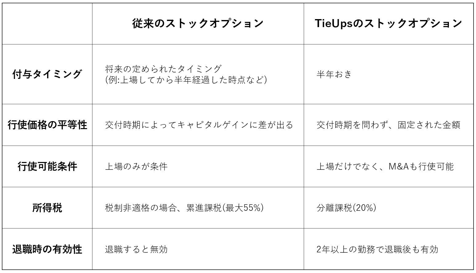 従来のストックオプション制度は上場しない限り行使できませんが、弊社は上場以外にもM&Aでも行使が可能になるよう設計しており、上場のみを条件にするよりも行使できる可能性が高くなります。
