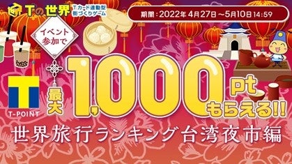 Tカード連動型ゲーム「Tの世界」条件達成でTポイントが最大1,000ポイントもらえる 世界旅行ランキング 台湾夜市編イベントを開催中